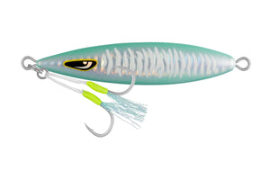 Classic teardrop shape, ideal for almost all jigging styles. Comes rigged with super strong Assist hook on head, ready to fish out of the packet. From fast and erratic for mid-water dwelling species like Kingfish. To a more slow and methodical slow-pitch style of jigging for bottom species. The wider body profile makes the jig flutter more on the drop and produces a wider thumping action on the lift.